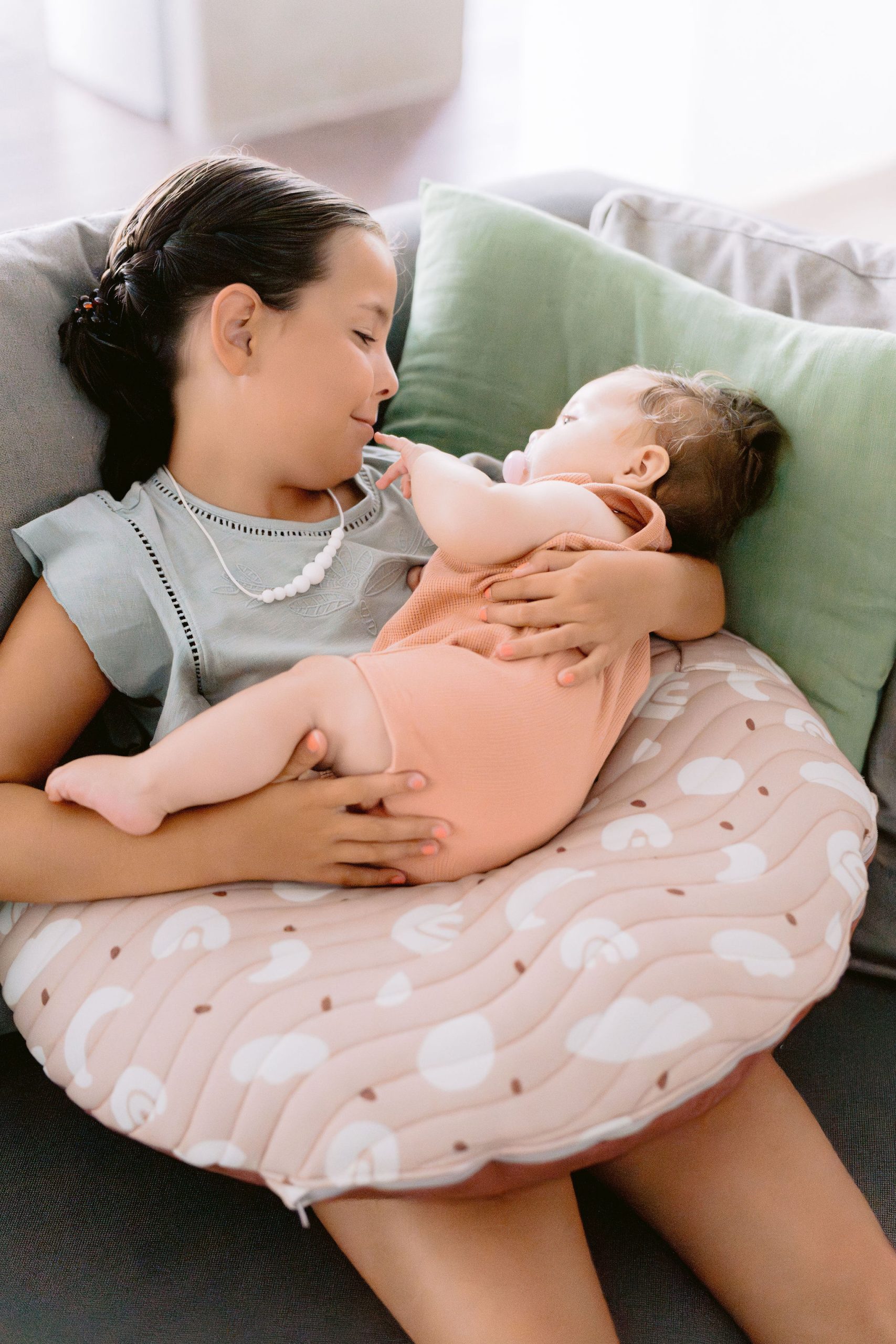 A cushion like a cocoon, which also allows you to put your child down or sit him or her down to take a breather.